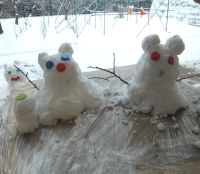 只今雪ダルマの製作中♬