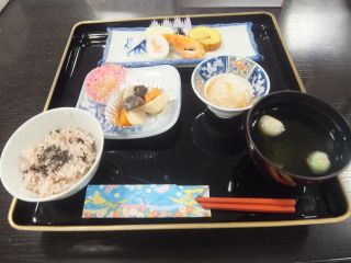 お赤飯や海老…いろいろ美味しく召し上がって頂きました
