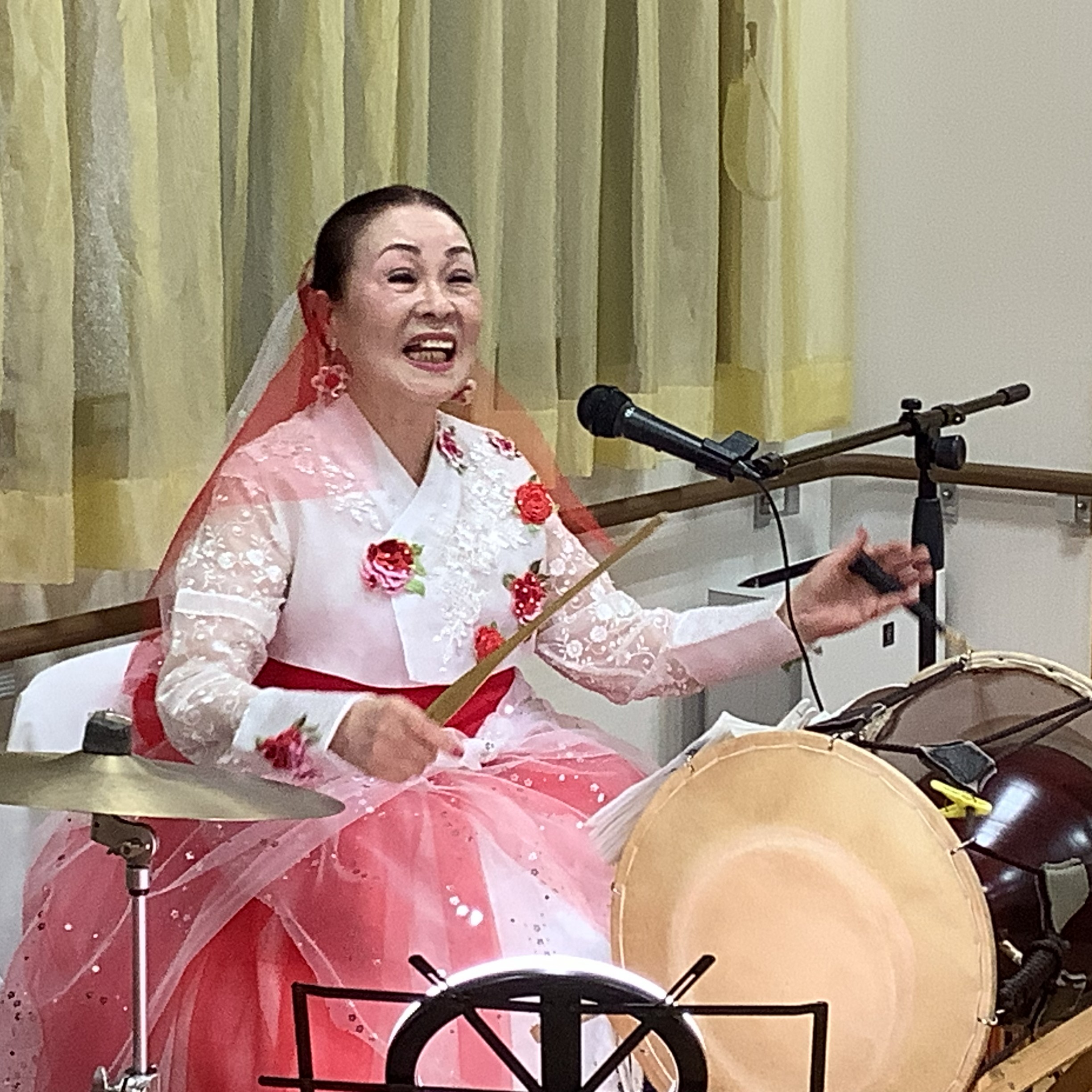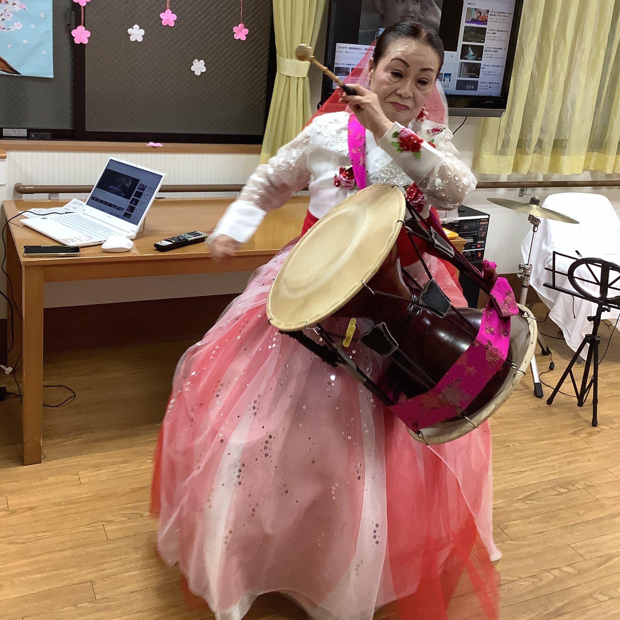珍しい韓国太鼓・色鮮やかな衣装と優雅な舞いに、見入っていらっしゃいました。