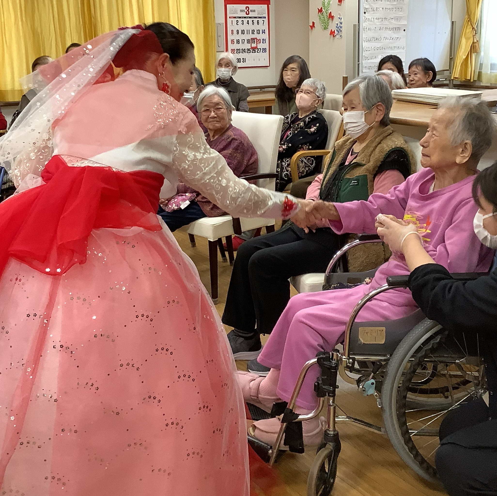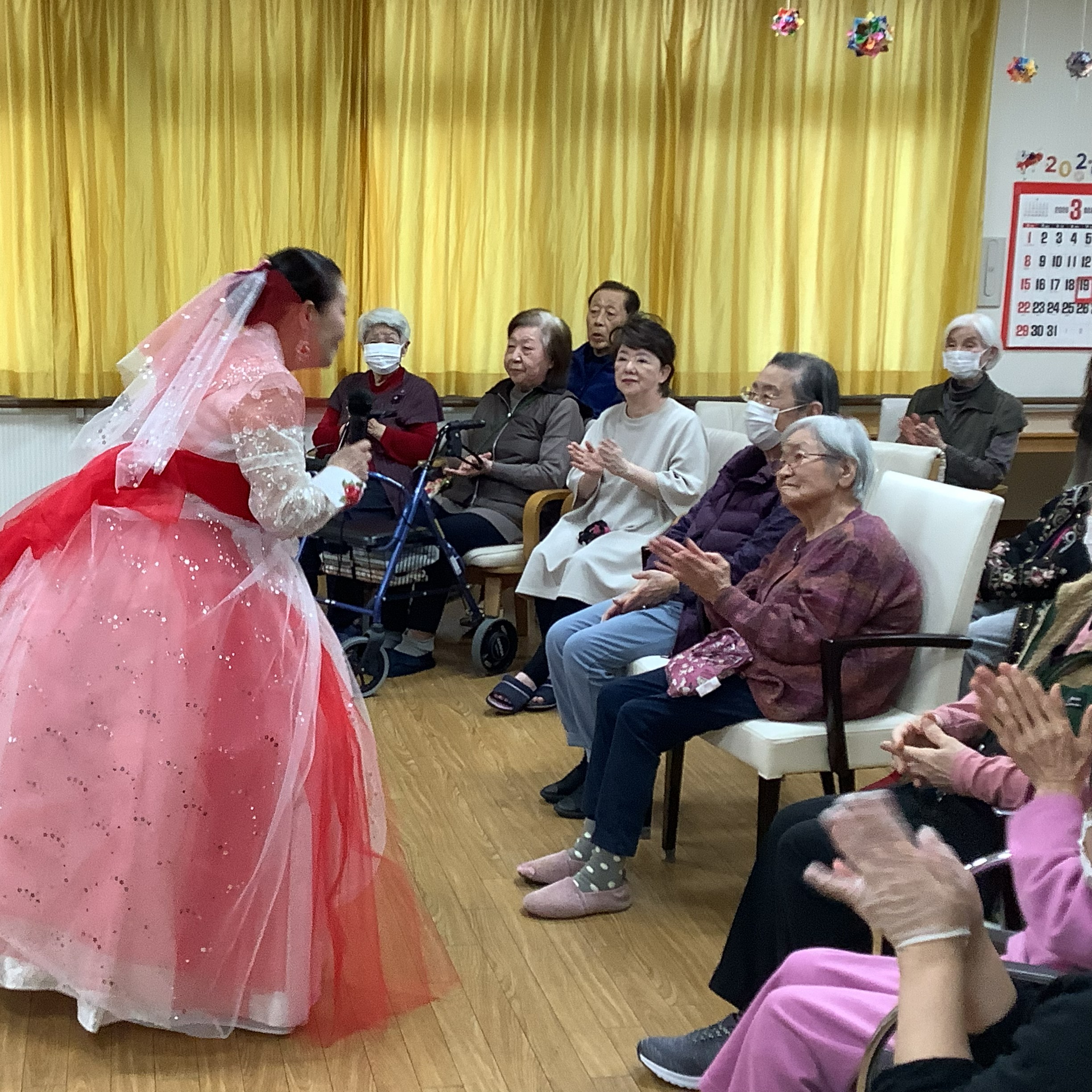 地域ボランティアの方にお越し頂き、韓国舞踊と懐かしの歌をご披露いただきました。