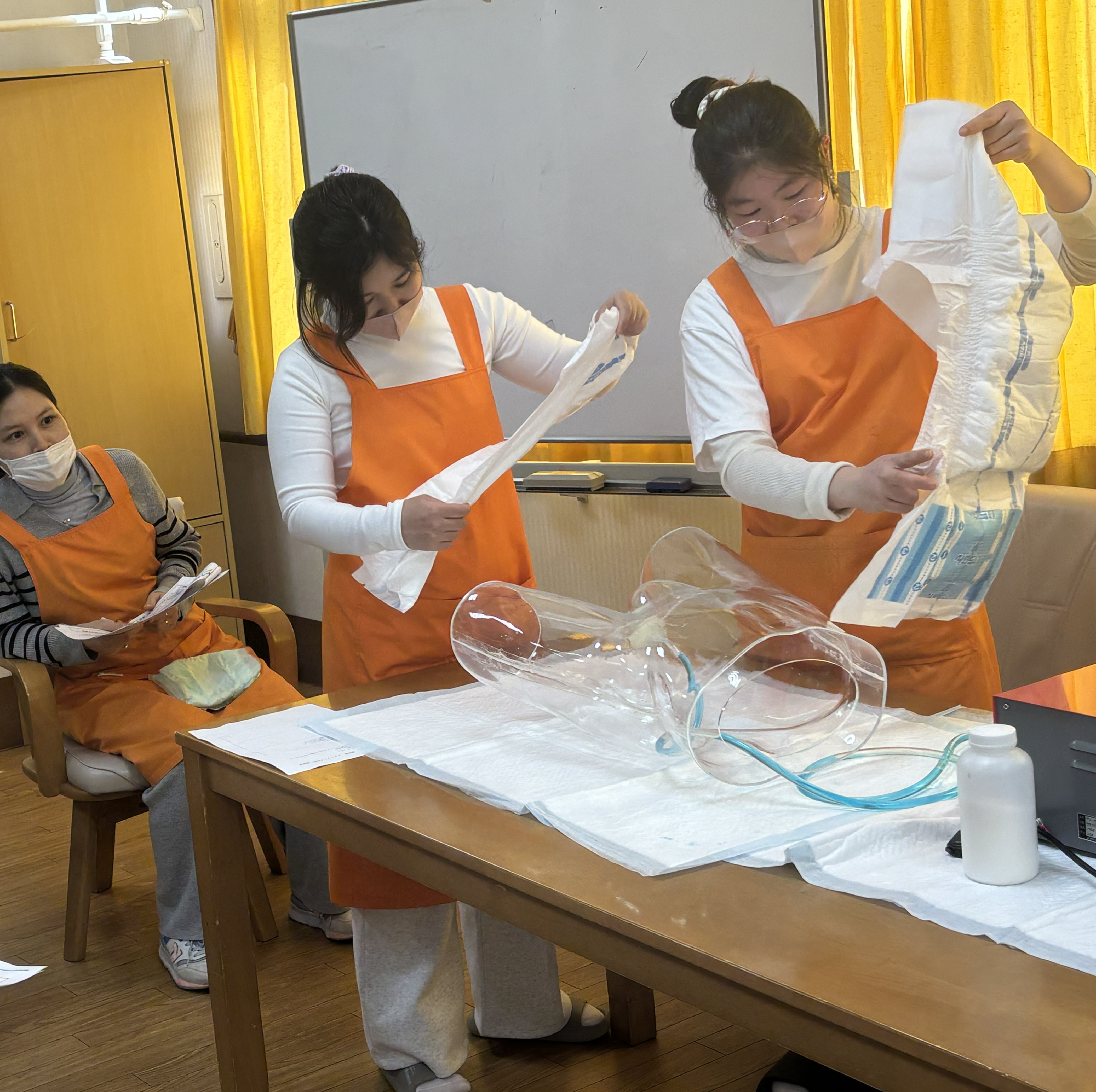 今のオムツやパット類の吸収性能説明や実際の見本を使った実演もあり、正しい装着方法や工夫について具体的に学ぶことができました。