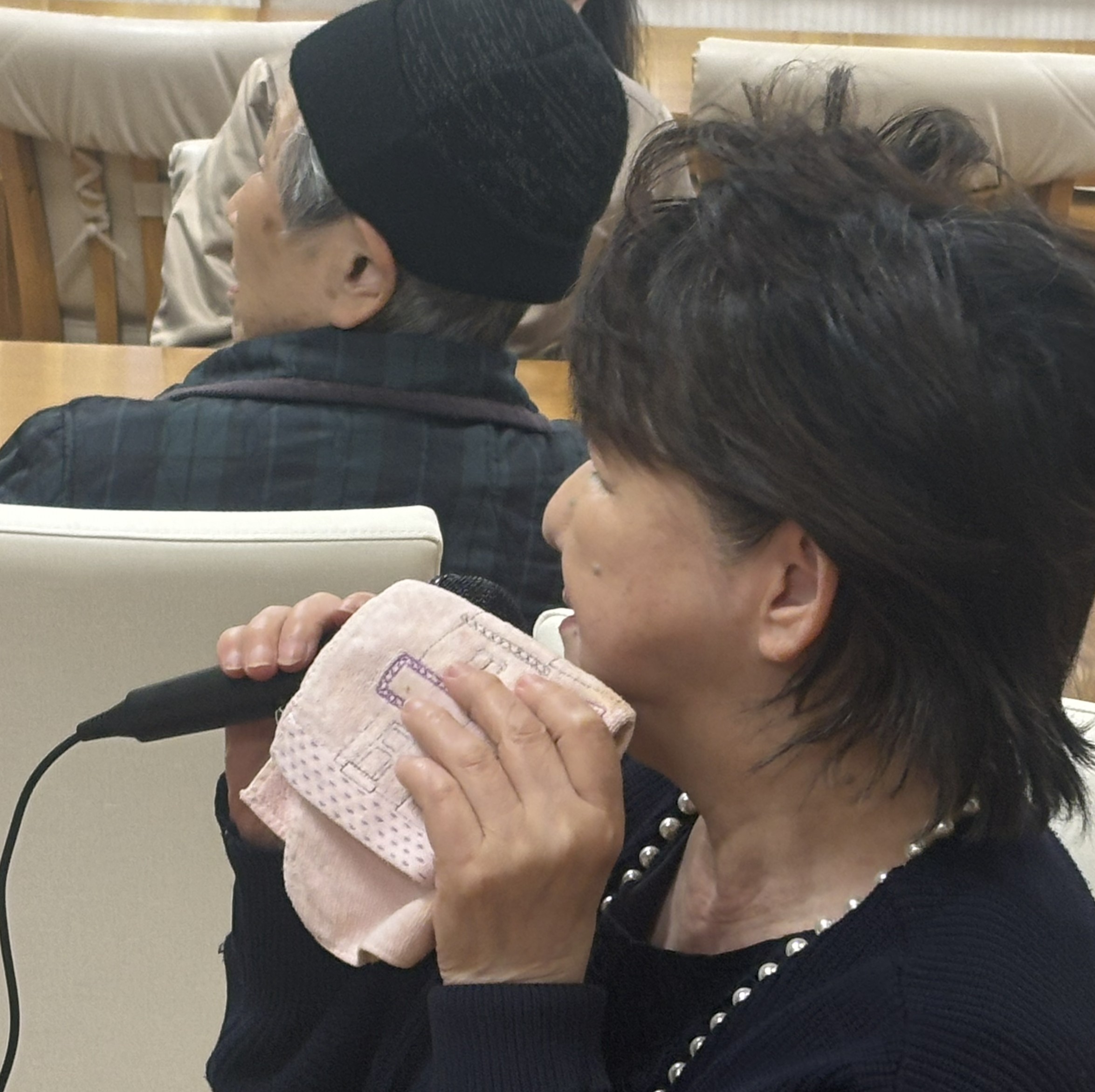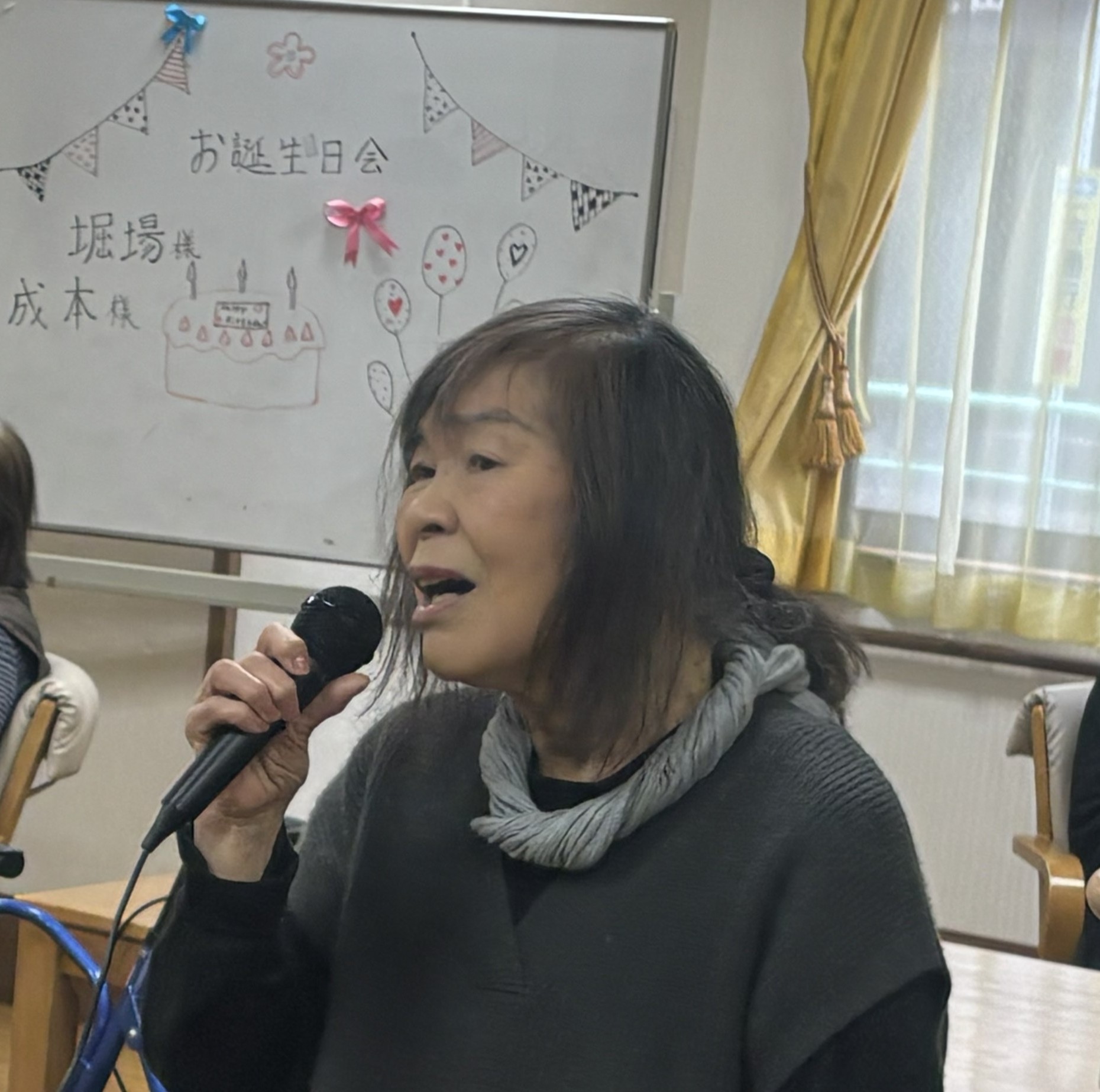 その後はカラオケを楽しまれ、お好きな曲を歌われたり、手拍子で盛り上げたりと、会場は大変賑やかな雰囲気に包まれました。恥ずかしがりながらも歌を口ずさんで、心も体も元気になる時間となりました。