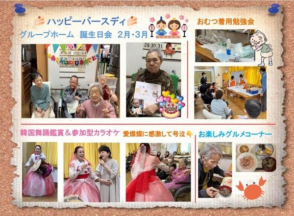 グループホームでは2月・3月に、それぞれ誕生日会を開催いたしました。