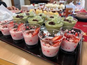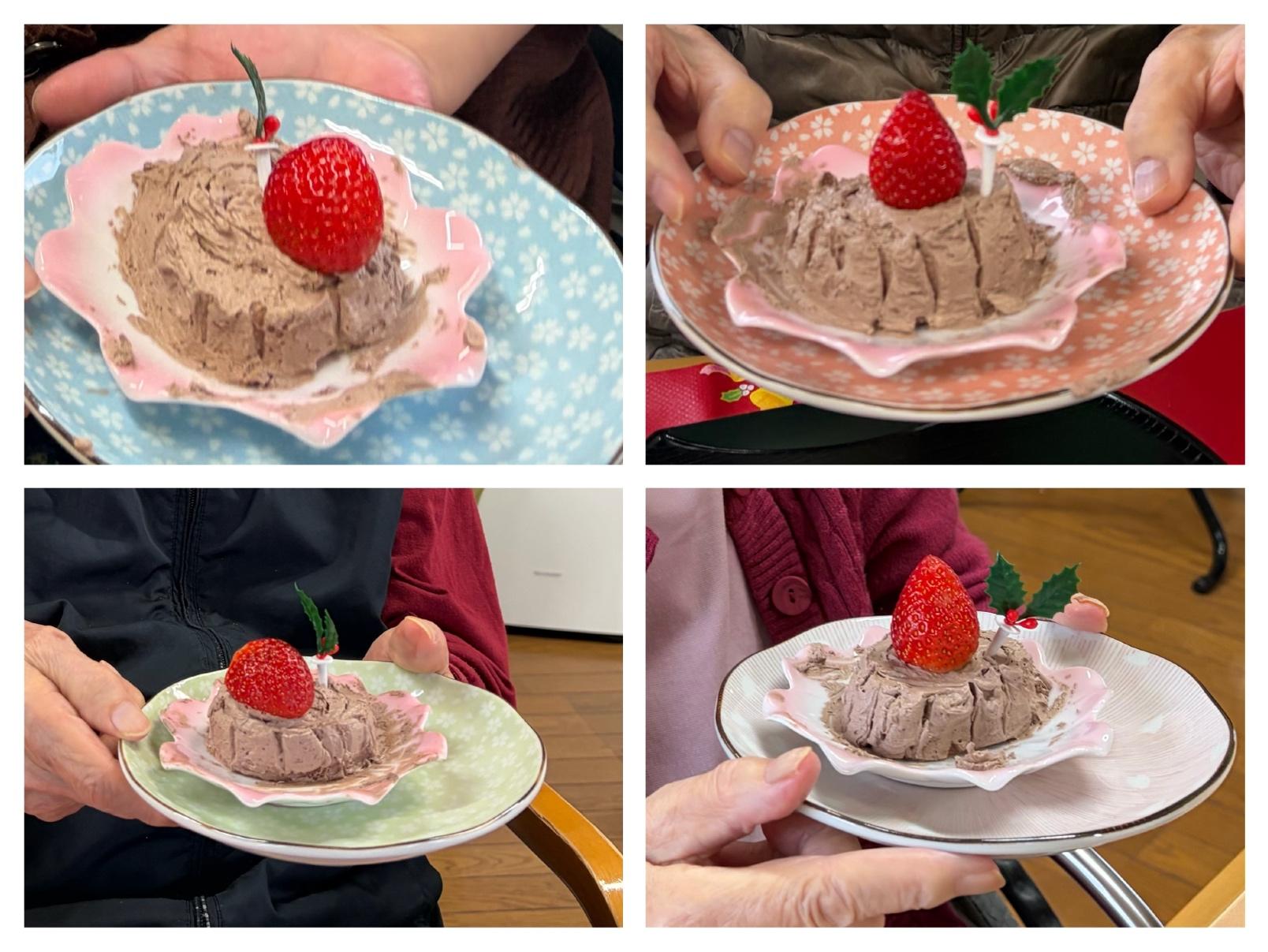 入居者の皆さまと一緒にクリスマスケーキ作りとケーキバイキングを楽しみ、笑顔あふれるひとときとなりました。