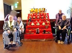 きれいなひな飾りが完成し、記念撮影。