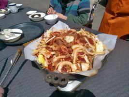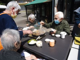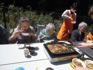 本日は施設の裏庭にて、「ジンギスカン」を焼きいただきました